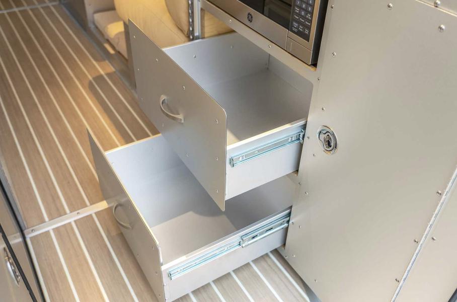 Трейлеры получили пакет доработок, также доступна индивидуальная программа персонализацииОбновленные модели Bowlus получили вертикально ориентированные светодиодные фонари в заостренной задней части кузова. По мнению разработчиков, новая светотехника позволит сделать трейлеры более заметными на дорогах. Во все комплектации кемперов теперь входит инновационная система кондиционирования с направленной вентиляцией, которая циркулирует очищенный воздух по жилому отсеку. Кроме того, в салоне моделей появились выдвижные ящики с доводчиками для хранения вещей.