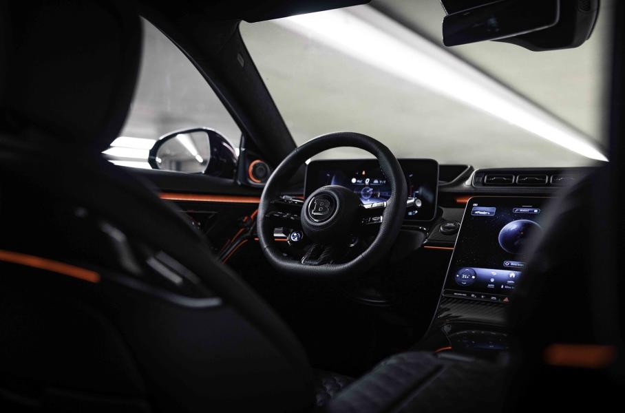 Помимо этого, седан от Brabus получил обвес из углепластика с передним сплиттером, испытанный в аэродинамической трубе, карбоновые насадки на боковые воздухозаборники и фирменную решетку радиатора с литерой B, оптимизирующую поступление воздуха в моторный отсек.