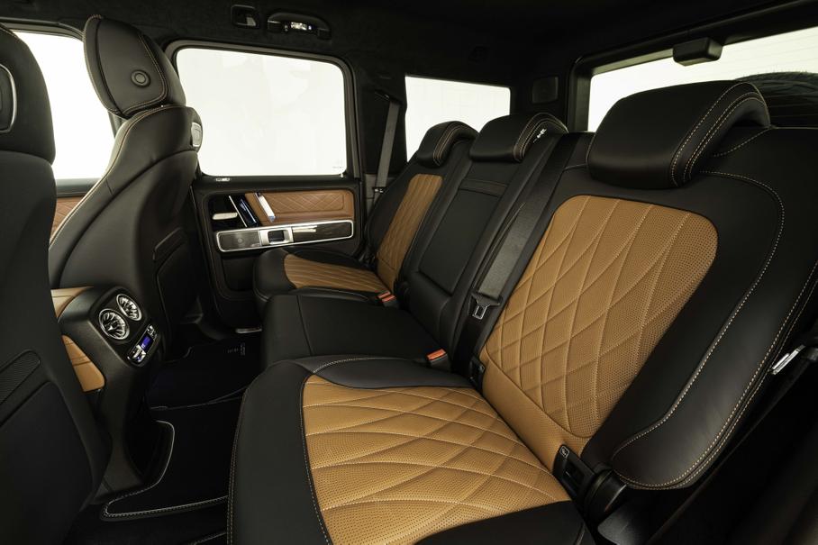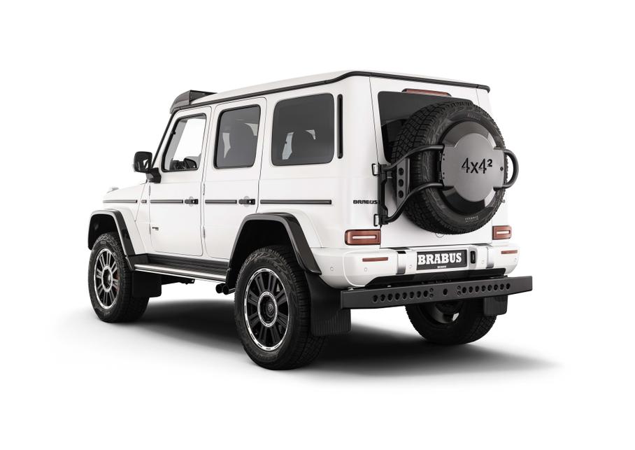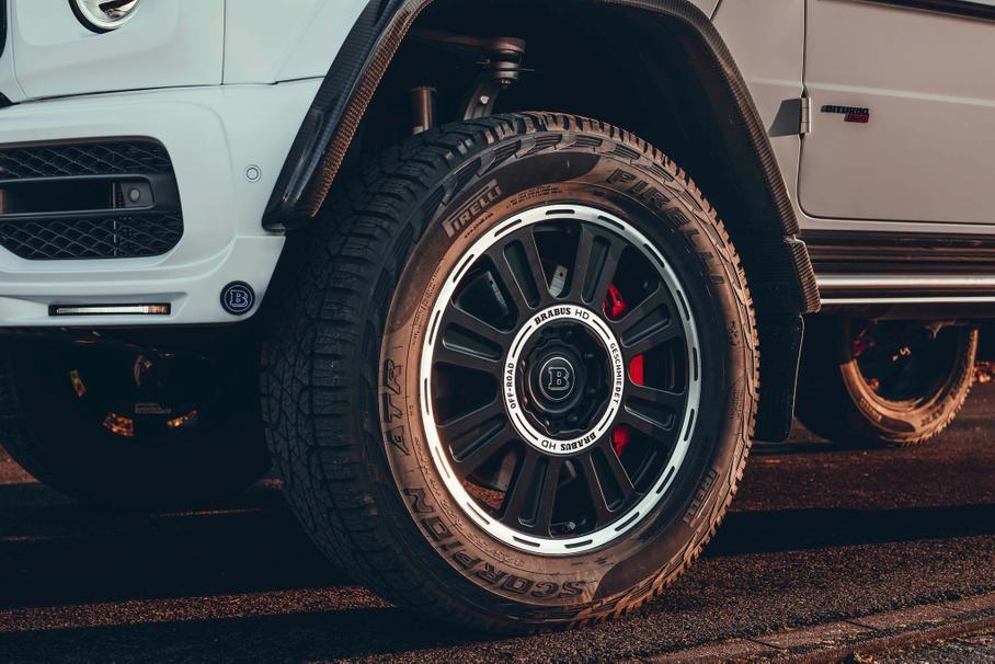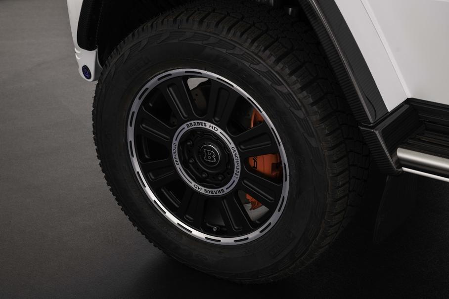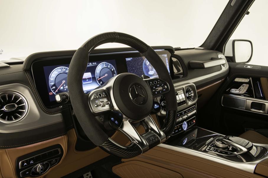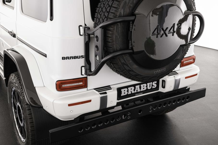 Зато данные о доработках эксклюзивного «Гелендвагена» Brabus не скрывает. Для автомобиля предложен углепластиковый обвес Brabus Widestar, расширяющий кузов, а за доплату можно установить аксессуары из каталога Brabus Adventure — силовой передний бампер со встроенной лебёдкой, экспедиционный багажник на крышу и лестницу для доступа к нему — и новые 22-дюймовые кованые диски Brabus Monoblock HD. Что касается салона, то возможности его персонализации ателье описывает как «неограниченные».