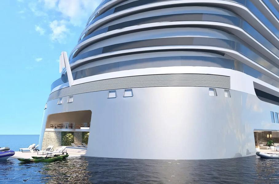 В движение роскошный лайнер будут приводить двигатели, работающие на сжиженном природном газе. Корабль сможет перемещаться по всем континентам, останавливаясь в городах от одного до пяти дней.