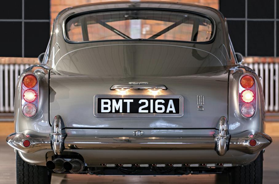 Специально для съемок фильма автомобиль прошел серьезный тюнингДля съемок фильма было построено восемь одинаковых Aston Martin DB5. Каждый автомобиль оборудовали бронированным лобовым стеклом, вращающимися номерными знаками, макетом пулемета, а также выдвижными таранами в передней и задней частях кузова. В салоне появился каркас безопасности, пульт дистанционного управления гаджетами и копия радара.