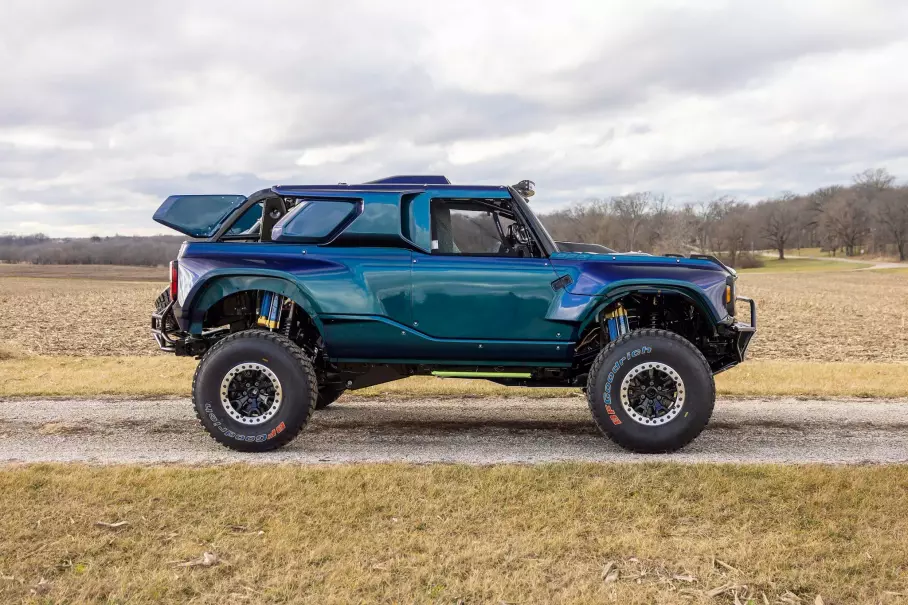 Особенностью Ford Bronco DR, выпущенного в октябре 2023 года, стало меняющее цвет лакокрасочное покрытие Mystichrome с оттенками синего, зелёного и фиолетового. За столь редкий внедорожник, выставленный на аукционе Bring a Trailer, покупатель выложил 365 тысяч долларов — почти вдвое больше, чем стоил новый автомобиль в момент выхода на рынок.