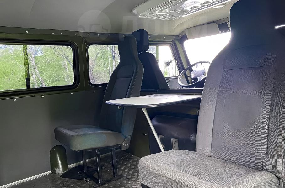 «Буханке» добавили силовой бампер с лебедкой и шноркель для увеличения глубины преодолеваемого брода, литые колесные диски, лифт-комплект подвески и блокировки обоих мостов. Есть видеорегистратор с камерой заднего вида, зеркала подогреваются, а багажник снабжен лампочкой. «Техника» стандартная — 2,7-литровый бензиновый ЗМЗ мощностью 112 лошадиных сил в сочетании с «механикой» и полным приводом.