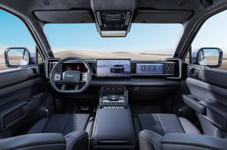 Fang Cheng Bao 5 окажется роскошным, «цифровым» и дорогимВ концерне BYD сразу посчитали ориентиром для Leopard 5 актуальный Mercedes-AMG G 63. По оформлению салона немецкий внедорожник удалось превзойти: разрешение медиасистемы — 2,5К, диагональ тачскрина — 15,6 дюйма, а перед пассажиром отдельный 12,3-дюймовый сенсорный экран. Ещё «китаец» лишён центрального тоннеля, а потому простора больше.