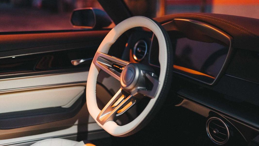 Салон оформлен в монохромной гамме с использованием кожи чёрного и бежевого цветов. Новые сиденья и руль в ретро-стиле сочетаются с современной цифровой приборной панелью и мультимедийной системой с тачскрином. В тон интерьеру выполнена обивка салона, который также имеет фоновую подсветку.
