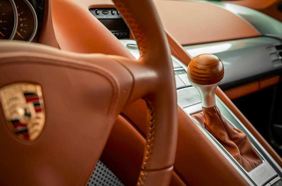 В салоне, отделанном терракотовой натуральной кожей, установлены кресла-ковши, а рукоятка рычага переключения передач в стиле Porsche 917 изготовлена из березы и ясеня. Также в списке оборудования числятся кондиционер и CD-стереосистема Porsche Online Pro, а бонусом к лоту идут чехол-тент и фирменный набор для багажа в черном цвете.