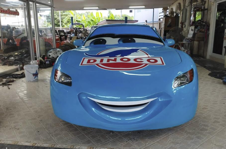 Тайские специалисты построили два мультяшных автомобиля красного и синего цветов.
