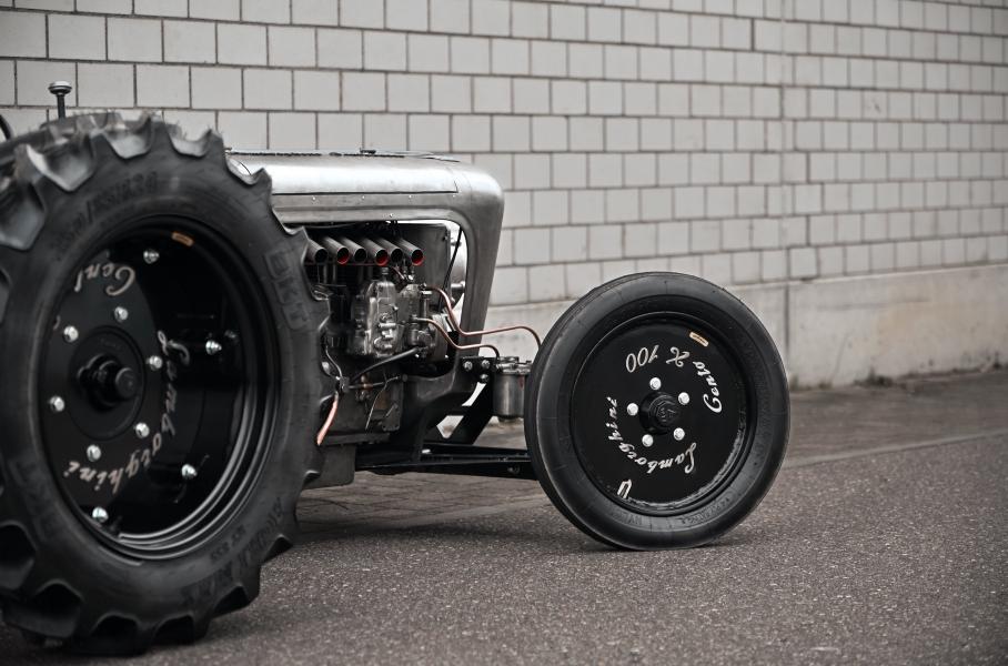 Ещё один подарок семье Ламборгини преподнесли компания Klima-Lounge и дизайнер Адлер Капелли, которого называют Марчелло Гандини в мире тракторов. Вместе они создали удивительный Lamborghini Centenario Trattore, напомнивший об истоках марки. В отличие от суперкара трактор оснастили трехцилиндровым дизелем 2.2 (36,5 л.с.) от модели DLA 35, так что шесть выхлопных патрубков здесь больше для вида. Всего таких Trattore было построено пять. Один из них и выставлен на продажу швейцарской cartech.ch autotechnik ag.