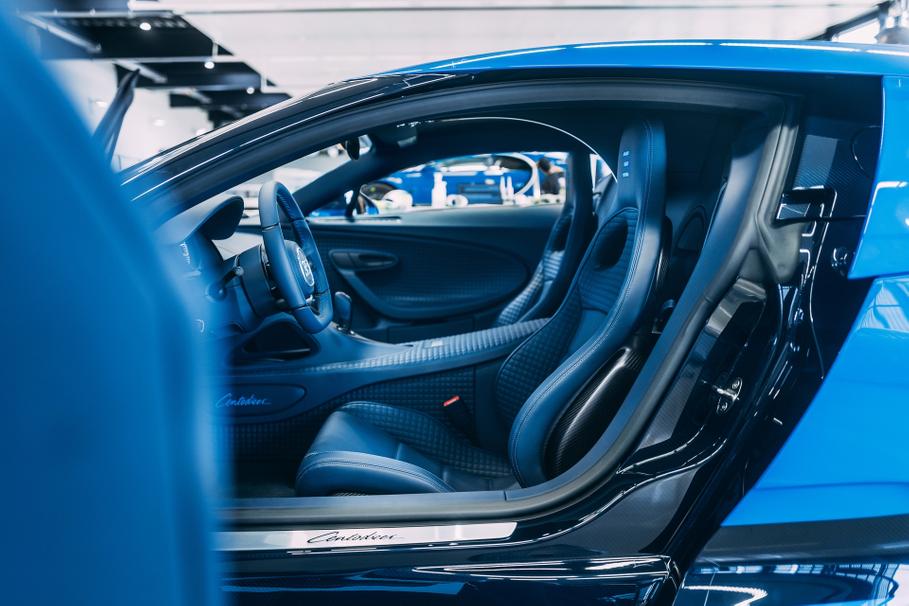 Источником вдохновения для отделки послужил Bugatti EB110 SSПод новый гиперкар, построенный на базе Bugatti Chiron, инженеры адаптировали подлокотники, дверные панели, накладку центрального тоннеля, накладки на пороги, обивку крыши, напольные коврики, заднюю панель и сиденья.