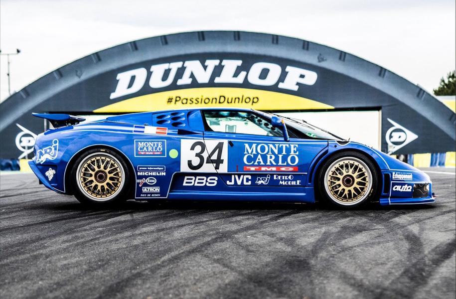 Такой вариант декора выбрал владелец гиперкараЭто единственный вариант модели, который стартовал в марафоне «24 часа Ле-Мана». В 1994 году три француза — Ален Кудини, Эрик Элари и Жан-Кристоф Бульон — квалифицировались на 18-м месте среди 50 участников гонки, а в гонке, через 23 часа 13 минут после старта и всего за 47 минут до финиша, вылетели с трассы.