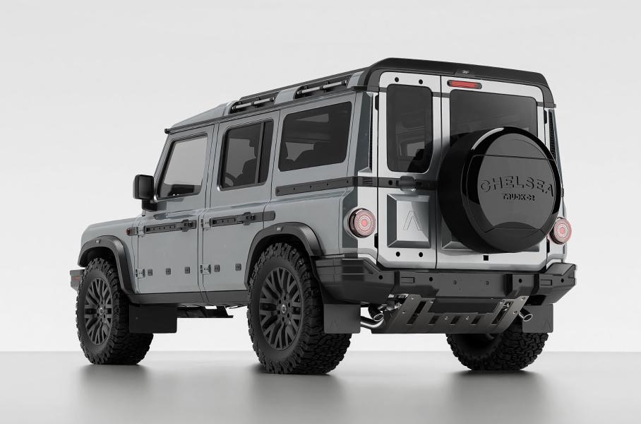 Внедорожнику достался задний спойлер, расширители арок и новая выхлопная системаЛондонская Chelsea Truck Company выпустила пакет доработок для Ineos Grenadier. Мастерская давно и плодотворно работает с «Дефендерами» и «Рэнглерами», но вездеход от Ineos попал к ней в руки впервые (если не считать ранних экспериментов). Пока предложен только внешний стайлинг. Позднее появится и услуга по перетяжке салона, причем с возможностью выбора отделочных материалов. Это может быть и натуральная кожа, и ткань с различными узорами, и кожзам.