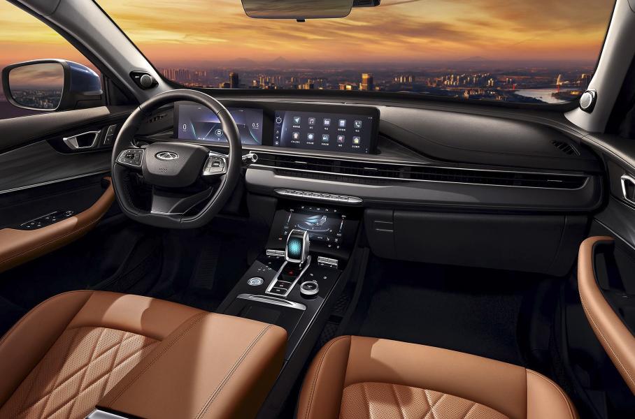 В салоне появились два экрана под единой панелью — 12,3-дюймовая цифровая панель приборов и дисплей мультимедийной системы диагональю 24,6 дюйма. Еще один сенсорный экран на восемь дюймов, расположенный на центральной консоли, отвечает за управление климатической системой. Для обновленного Tiggo 8 Plus заявлена система удаленной активной очистки воздуха в салоне и фильтрующий элемент системы кондиционирования медицинского класса CN95. Также упоминается аудиосистема Sony с 10 динамиками.