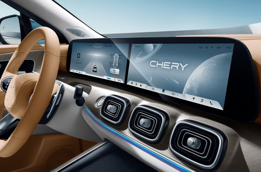 В списке опций — панорамная крыша, проекционный экран, отделка двухцветной кожей с контрастной прострочкой, вставки «под дерево», контурная подсветка, матричные фары, легкосплавные диски диаметром 20 дюймов, адаптивный круиз-контроль с возможностью распознавания дорожных знаков. А вот активной подвески и раздельных кресел второго ряда у Chery нет.