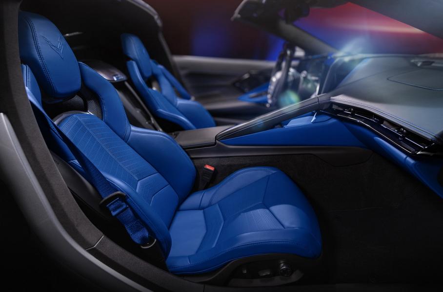 Селектор выбора ездовых режимов переместился и высвободил место для беспроводной зарядки гаджетов. Телематический комплекс стал умнее и позволяет в реальном времени отслеживать основные характеристики через приложение. Материалы отделки пересмотрены: теперь Chevrolet Corvette можно заказать с вставками из углепластика, а передние кресла оформить в разных цветах.