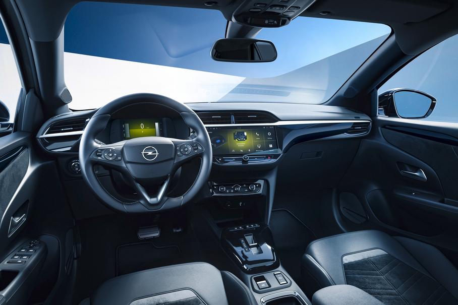 Салон почти полностью перекочевал с дореформенной Corsa. Изменены формы сидений, рычаг переключения передач и рулевое колесо. Кроме этого, хэтчбек получил новую медиасистему на процессоре Snapdragon от Qualcomm, с 10-дюймовым экраном, улучшенной графикой и встроенным ИИ. Смартфоны, подключаемые через Android Auto или Apple CarPlay, можно будет заряжать без проводов.