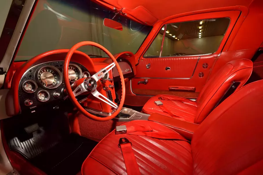 Алая двухдверка с чёрным салоном также прошла реставрацию. Ещё один Corvette С2 отличается редким песочным цветом, а тёмно-синий спорткар эксклюзивен вдвойне — во-первых, это один из 199 автомобилей с пакетом Z06, во-вторых, он конвертирован в праворульный, для рынка Австралии.