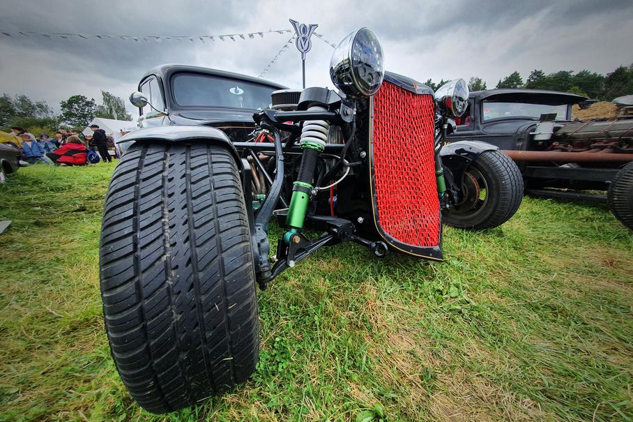 Из нержавейки к тому же сделаны тормозные шланги, топливная система и 68-литровый бак. Кузов при этом практически полностью новый: тут другие передние крылья, бамперы, решетка радиатора и лобовое стекло. В салоне родстера без новшеств тоже не обошлось. В глаза бросаются кастомные приборы, центральная консоль из стекловолокна с массивными поручнями, педали Clayton Machine Works, руль Momo и коврики Mercedes-Benz. Завершающие штрихи — аудиосистема Alpine, климатическая установка Vintage Air и подрулевые переключатели.