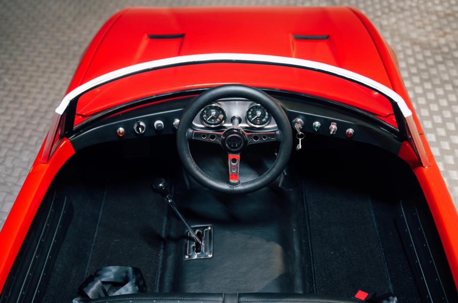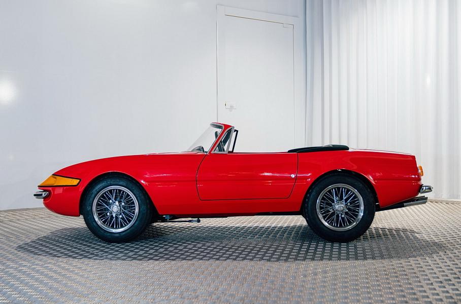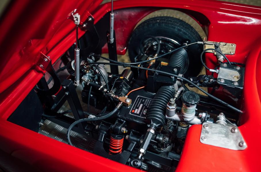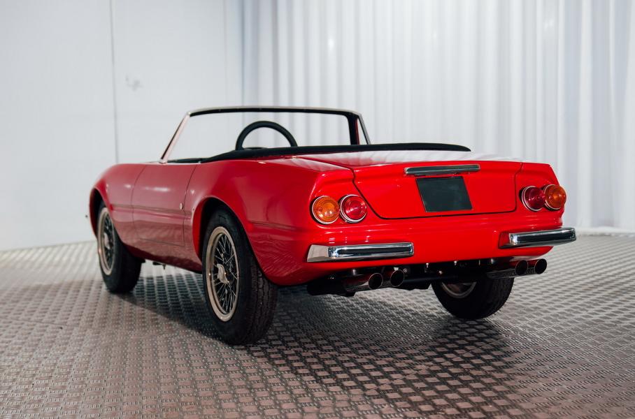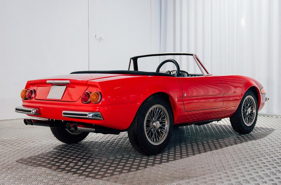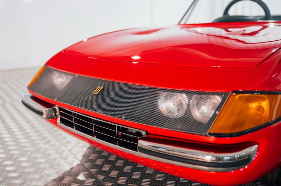 Кузов длиной 2,56 метра сделан из стекловолокна, но основой Ferrari Daytona Junior послужило стальное шасси с коробчатым сечением. У родстера мощностью 6,7 лошадиной силы независимая подвеска с двойными поперечным рычагами сзади, дисковые вентилируемые тормоза Brembo и рулевое управление реечного типа.
