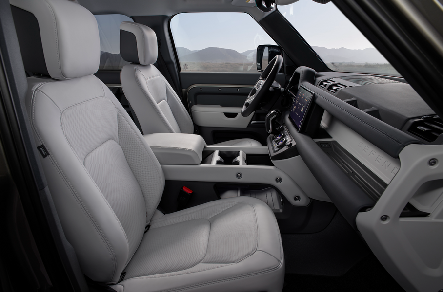Для «длинного» Defender 130 доступен пакет Captain's Chairs с «капитанскими» креслами второго ряда с тонкими подлокотниками и довольно большим расстоянием между ними, благодаря которому пассажирам будет легче пробираться к третьему ряду.