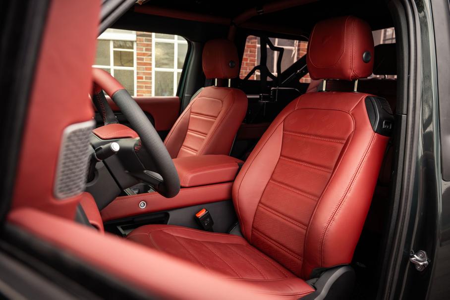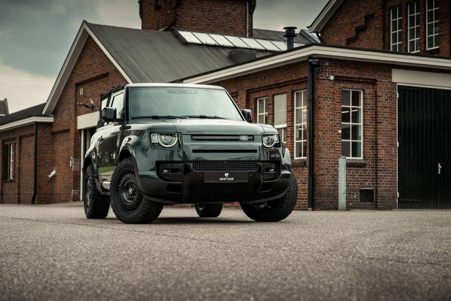 Это уже четвёртый автомобиль проекта от Heritage CustomsТрёхдверный внедорожник специалисты лишают жёсткой крыши, вместо которой устанавливается трубчатый каркас безопасности и мягкий верх с электроприводом. При работе над новым экземпляром ателье реализовало заказ клиента, который выбрал тёмно-зелёный цвет кузова в сочетании с чёрными элементами.