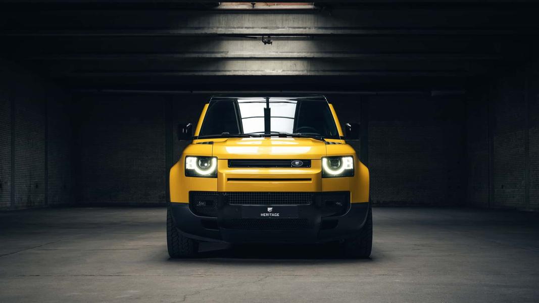 Это уже второй автомобиль от Heritage CustomsТрёхдверный внедорожник специалисты лишают жёсткой крыши, вместо которой устанавливается трубчатый каркас безопасности и мягкий верх с электроприводом. В конкретном проекте каркас и тент, равно как и бамперы с порогами, окрашены в чёрный цвет, контрастирующий с ярко-жёлтым оттенком кузова.