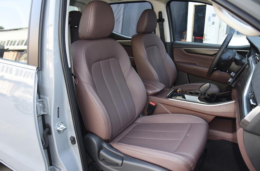 В салоне унификация с Rich 7 максимальная: появилась новая мультимедиасистема с «подвесным» 9-дюймовым тачскрином и сенсорной панелью климат-контроля, изменены передняя панель, центральный тоннель, дверные карты и даже руль. Отделочные материалы те же, что в пикапе: богатым комплектациям положены кожаный салон с вставками под дерево.