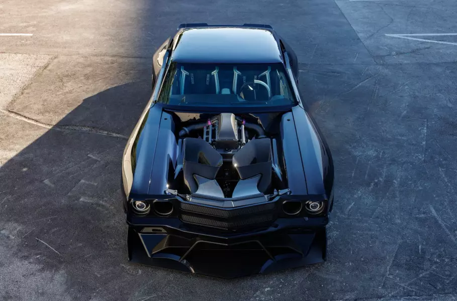Кузов маслкара изготовлен из листового металла с сохранением оригинальных форм Chevelle и небольшими вкраплениями эстетики гоночных автомобилей класса GT. Воздуховоды, решетка радиатора и составные части фар распечатаны на 3D-принтере. Как и передний бампер, который бесшовно стыкуется с кузовом через болтовые соединения в огромном алюминиевом сплиттере. Днище ради оптимизации аэродинамики прикрывают углепластиковые панели на быстросъемных защелках.