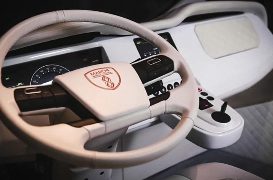 В сентябре прошлого года немецкие специалисты показали 12-метровый роскошный автодом с встроенным гаражом для перевозки автомобиля. Кроме того, дом на колесах оборудовали премиальным интерьером и солнечными батареями.