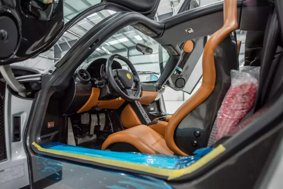 Заводской набор багажных сумок тоже остался в оригинальной упаковке. Напомним, Ferrari Enzo оснащается атмосферным 6-литровым V12 с отдачей 660 лошадиных сил и 657 Нм крутящего момента. Коробка передач — автоматическая секвентальная 6-ступенчатая, привод — на заднюю ось. Разгон до «сотни» у машины занимает 3,3 секунды.