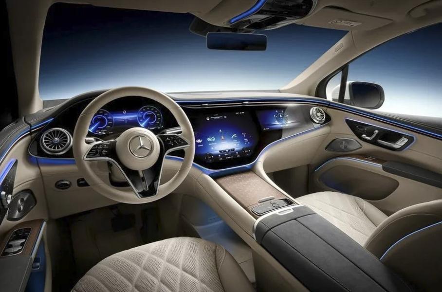 Салон электрокара ранее раскрыл сам Mercedes-Benz. Он рассчитан на семь мест (посадочная формула 2+3+2) и имеет изогнутую 56-дюймовую панель спереди с мультимедийной системой MBUX Hyperscreen, цифровой приборной панелью и отдельным экраном со стороны пассажира. Также ему обещан четырехзонный климат-контроль и отдельные экраны для второго ряда.