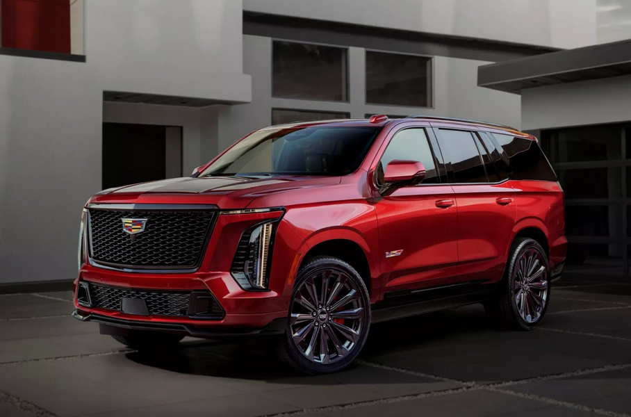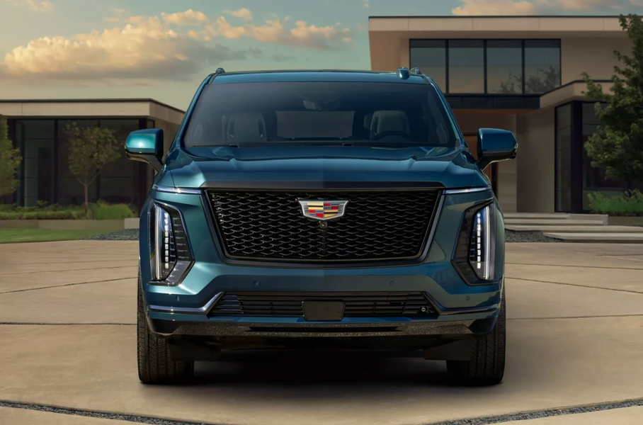 На рынок США новинка выйдет в конце 2024 годаEscalade 2025 модельного года досталась новая «двухэтажная» оптика с вертикальными фарами, иная решетка радиатора и шильдик с подсветкой. В версиях V-Series и Premium Luxury Platinum подсвечена и сама решетка.