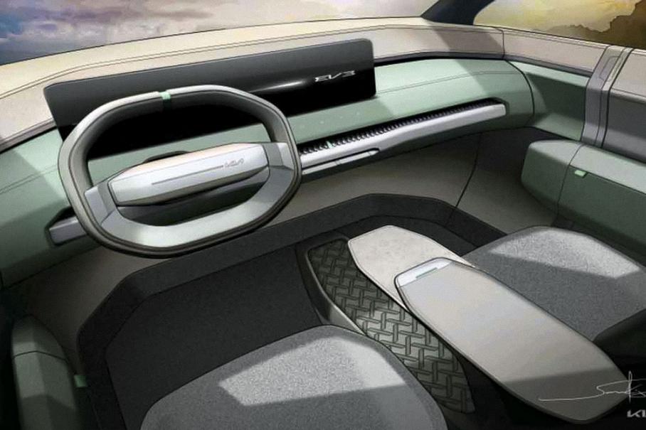 Концептуальный кроссовер EV3 позиционируется Kia как практичный электрокар, сочетающий в себе технологии и дизайн «старшей» модели EV9, но в более компактном размере. У него прочный кузов (никакой конкретики не приводится) и динамичный силуэт с покатой крышей. Из характерных особенностей можно отметить оквадраченные колесные арки с ассиметричными углами.