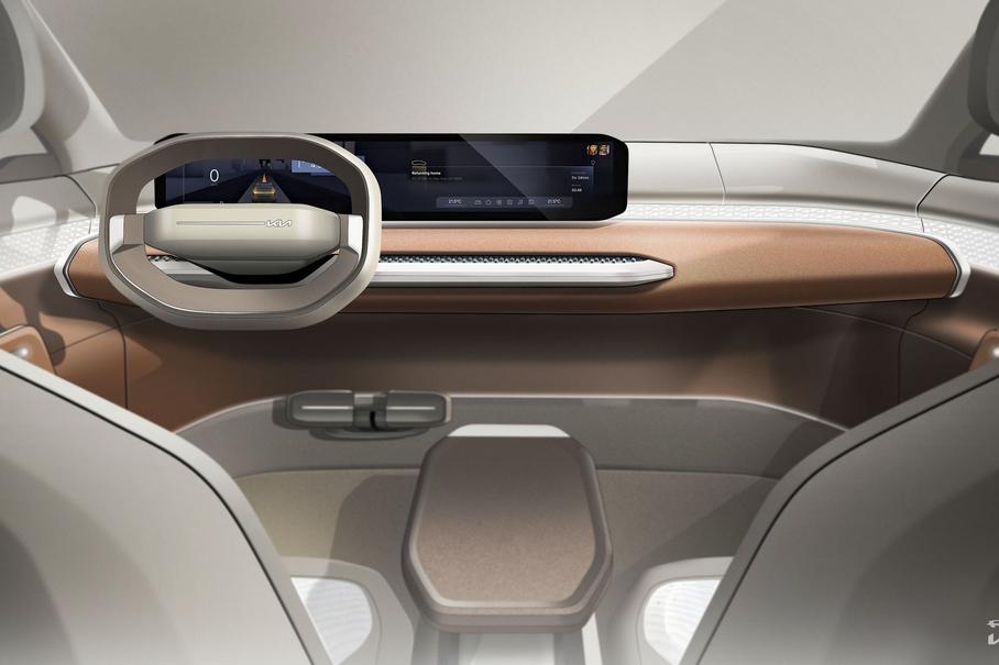 У спортседана EV4 четырехдверный кузов с длинным капотом, приподнятым спойлером на корме, вертикальными дневными ходовыми огнями и футуристичными колесными дисками. Салон Kia сравнивает с коконом и отмечает, что в отделке используется переработанный хлопок и натуральные красители. В оснащение седана включили функцию Mind Modes, регулирующую подсветку и вентиляцию и подстраивающуюся под водителя.