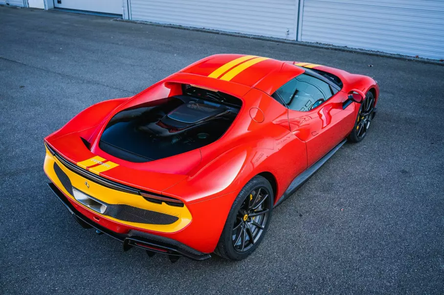 Пробег 296 GTB составляет всего 81 километр, так что покупку такой машины можно считать неплохим вариантом, если вас устраивает цветовое оформление. Технически продающаяся Ferrari 296 GTB идентична остальным экземплярам этой модели. Заднеприводное купе имеет 830-сильную силовую установку с 663-сильным 3,0-литровым турбомотором V6 и 167-сильным формульным электромотором MGU-K между ДВС и 8-ступенчатой роботизированной коробкой передач.
