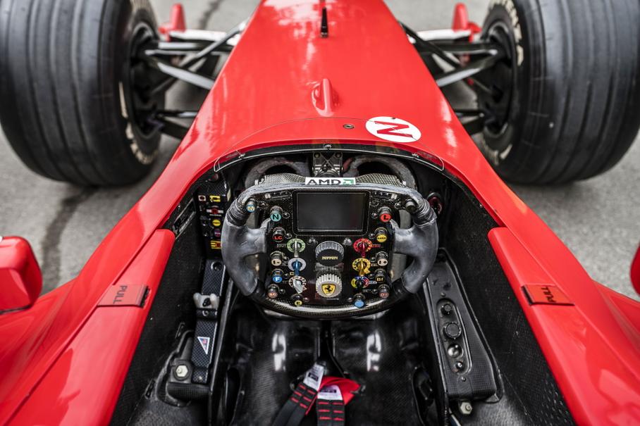 Эту же машину пилотировал и Мик ШумахерС момента окончания гоночной карьеры болид проехал менее 250 километров, часть из которых — заслуга Мика Шумахера. Сыну легендарного пилота была предоставлена возможность проехать на машине с 845-сильным 3,0-литровым V10 несколько кругов по культовой трассе Ferrari во Фьорано.