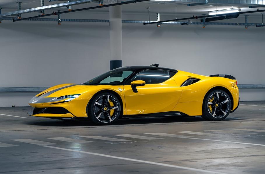 Это в 1,7 раза меньше, чем за такую же машину просят в России.Нынешний флагман Ferrari стал первым гибридом марки с зарядкой от сети и первым получил электрический полный привод. Причем в отличие от LaFerrari, купе и спайдера, тираж которых был ограничен, SF90 Stradale вошел в основную линейку. Силовая установка модели состоит из «турбовосьмёрки» 4.0 и трёх электромоторов — два приводят переднюю ось, а третий помогает ДВС. Паспортная отдача системы — 1000 лошадиных сил. С нуля до «сотни» гиперкар ускоряется за 2,5 секунды, до 200 — за 6,7, максимальная скорость — 340 километров в час.
