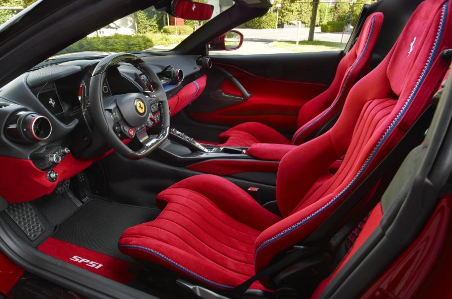 Дизайн двухдверки разработан в Ferrari Styling Centre по заказу коллекционера из Таиланда. Шасси, компоновка и двигатель остались от исходника, но кузов полностью оригинальный. Для оптимизации формы применились компьютерные симуляции и натурные тесты в аэродинамической трубе — и по акустическому комфорту новинка вряд ли отличает от стандартной машины. При этом, в отличие от 812 GTS, у SP51 вообще нет крыши, а значит, суперкар должен быть легче и быстрее.