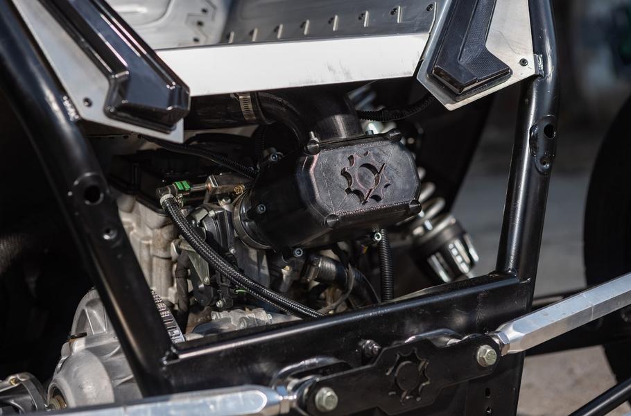 Кроме того, Polaris RZR получил невероятное количество кастомных деталей из алюминия: это рычаг коробки передач, приборная панель, крыша, солнцезащитный козырек, центральная пластина тяг задней подвески и держатели пружин. Но фишка багги даже не в них, а в извергающей пламя выхлопной системе. Цель? Показать, на что способна собственная мастерская Quad Logic, изготавливающая тюнинг-компоненты для Polaris и Can-Am.