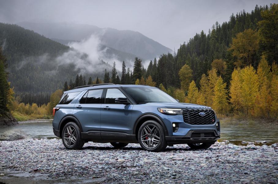 Explorer для США обновили не по китайскому сценариюВнедорожник Ford Explorer 2025 модельного года можно узнать по пересмотренной светодиодной оптике и иной форме радиаторной решетки, доступной в двух вариантах дизайна — у обычных версий рисунок в виде крупных ячеек, а у «спортивных» ST-Line и ST — мелкая сетка. Кроме того, обновились бамперы «по кругу» и иначе выглядит багажная дверь. В результате американский Explorer всё-таки заметно отличается от китайского варианта.