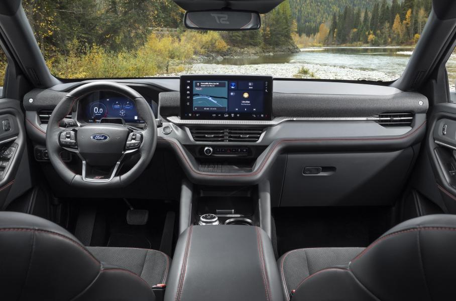 В салоне внедорожника появилась полностью новая передняя панель. Explorer обзавелся новейшим мультимедийным комплексом Digital Experience с экраном диагональю 13,2 дюйма, для которого доступны сторонние приложения, в том числе и игры — но поиграть получится только на парковке. Под экраном размещены дефлекторы вентиляции и панель с физическими кнопками, а еще ниже — выступающая площадка с беспроводной зарядкой. Помимо этого, кроссовер обзавелся виртуальной панелью приборов диагональю 12,3 дюйма и контурной подсветкой из семи цветов: Ice Blue, Orange, Soft Blue, Red, Green, Blue и Purple.