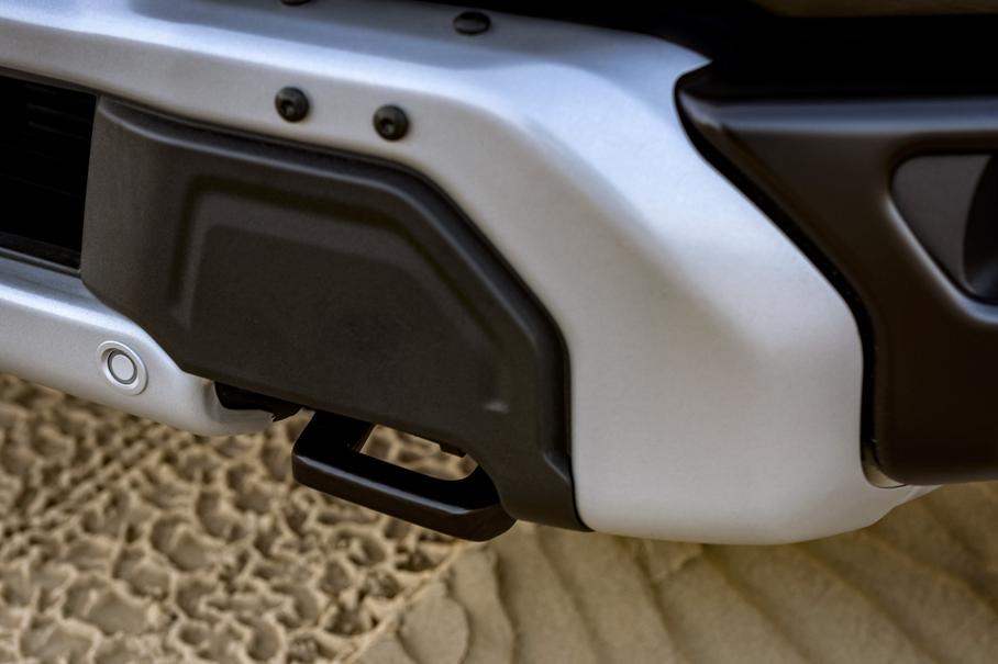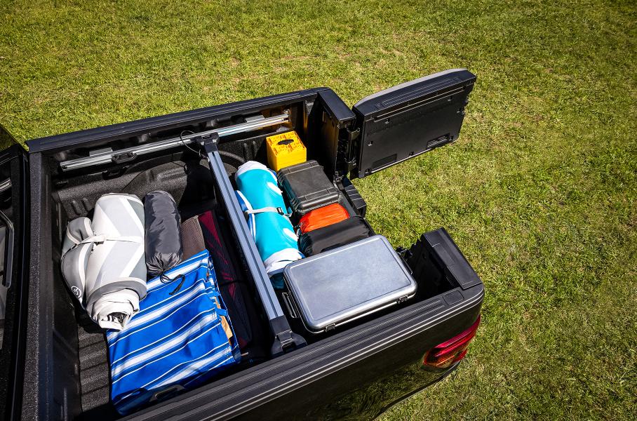 Самое же важное изменение на корме — новая схема открывания заднего борта Pro Access Tailgate. Теперь он не просто откидывается вниз, но и имеет распашную створку посередине (открывается на угол от 37 до 100 градусов) для быстрого доступа к грузу. Решение позволяет сократить расстояние до ручки борта и примерно на полметра увеличивает зону, куда можно дотянуться рукой.