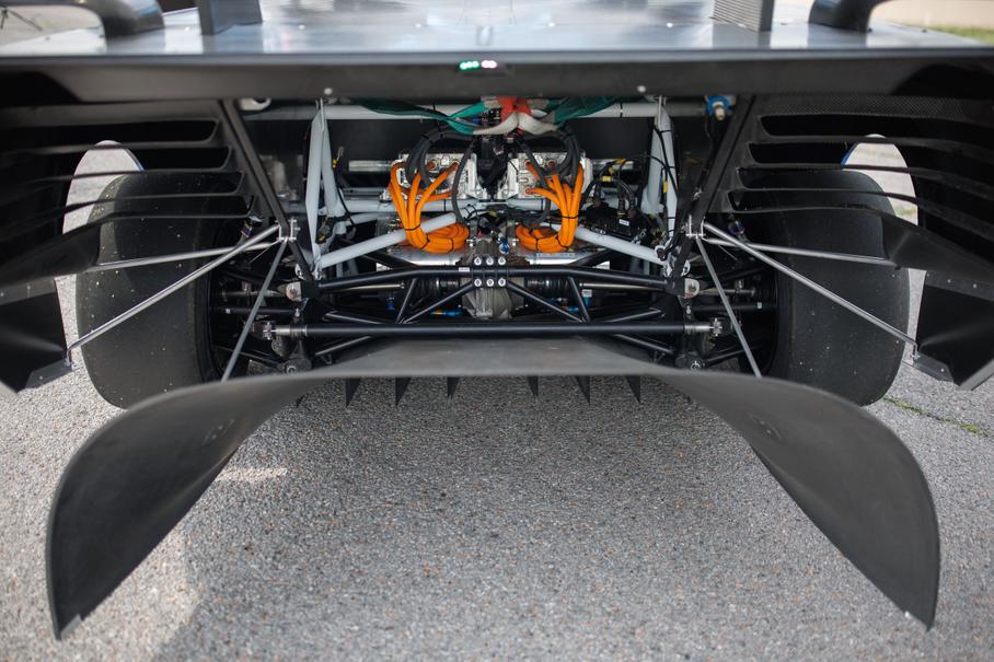 Прототип получил трехэлементный передний сплиттер, воздуховоды вместо фар, жалюзи в капоте, закрылки по бокам, массивный задний диффузор и многоэлементное заднее антикрыло. Электромобиль также оснащён углерод-керамическими тормозами, шинами Pirelli P-Zero на магниевых кованых дисках и полностью кастомной системой подвески.