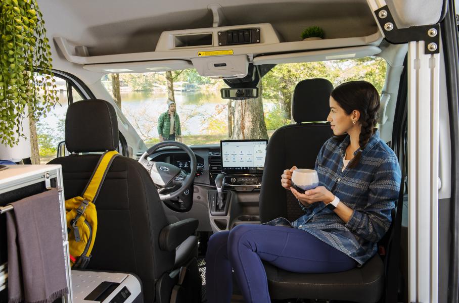 В списке оборудования – мультимедийный комплекс Sync 4 с 12-дюймовым экраном, смарт-ключ, несколько розеток на 110 и 12 вольт, а также USB-разъемы. Из вспомогательных систем заявлены адаптивный круиз-контроль и мониторинг слепых зон. В салоне имеются крепления для походной мебели – спального места, полок и различных ниш для хранения. А с опциональным пакетом Heavy-Duty Trailer Package такой Transit Trail может буксировать прицеп массой до трех тонн.