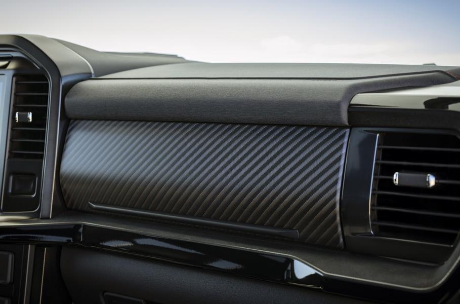Хардкорный пикап получил наддувный мотор 5.2 и 333-миллиметровый клиренсДля повышения надежности V8 в Ford Performance установили выпускной коллектор из литой нержавеющей стали, особый масляный радиатор и фильтр, а также откалибровали механический нагнетатель. Объем воздухозаборника увеличен на 66 процентов, благодаря чему двигатель эффективнее охлаждается. Пару «восьмерке» составляет 10-диапазонная автоматическая коробка передач, привод — полный с муфтой подключения передней оси.