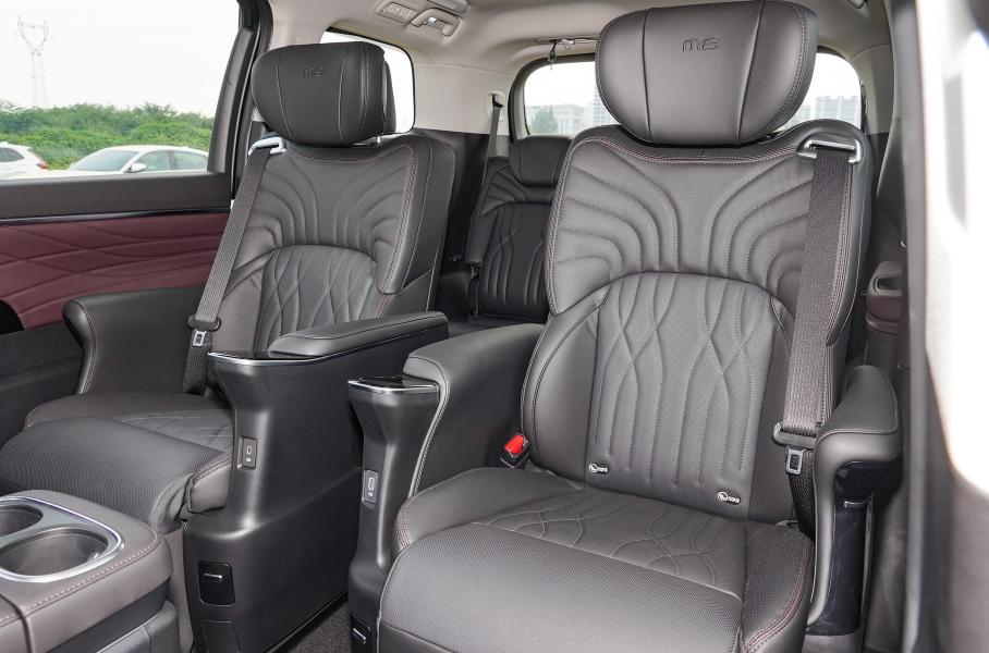 Салон рассчитан на семерых, на втором ряду раздельные кресла. Детальное наполнение комплектаций в России не раскрыто, но в Китае есть богатые варианты с мультиконтурными сиденьями с массажём, вентиляцией и оттоманками. Интерфейс кресел и мультимедиасистемы сенсорный, но трансформация салона происходит по старинке механическими усилиями. Среди «премиальных» опций — электромагнитная адаптивная подвеска.