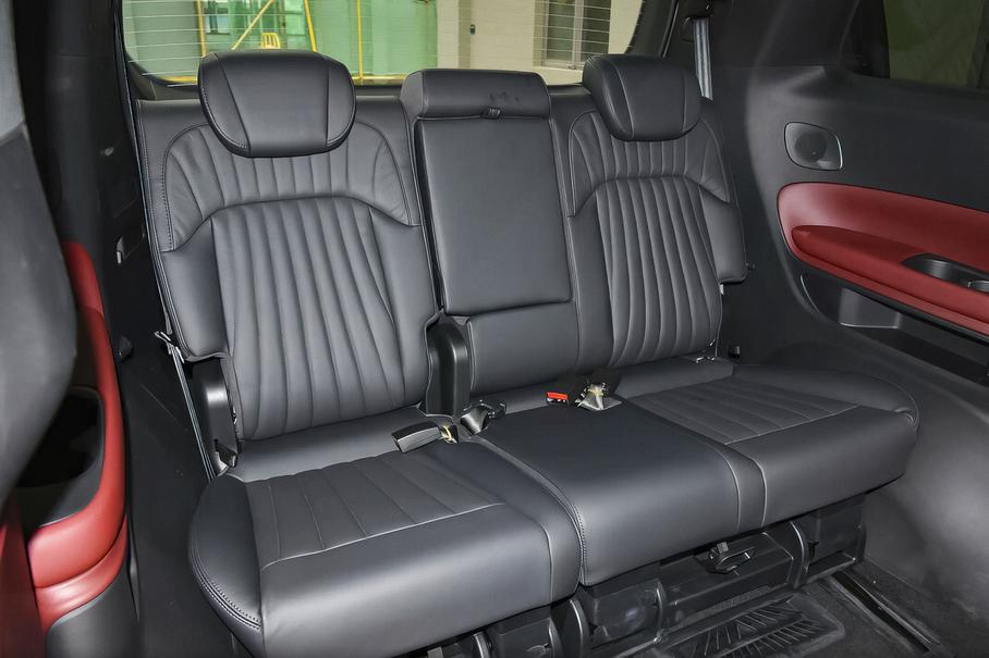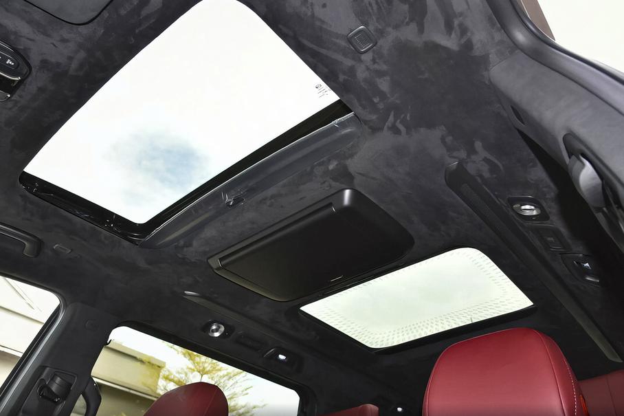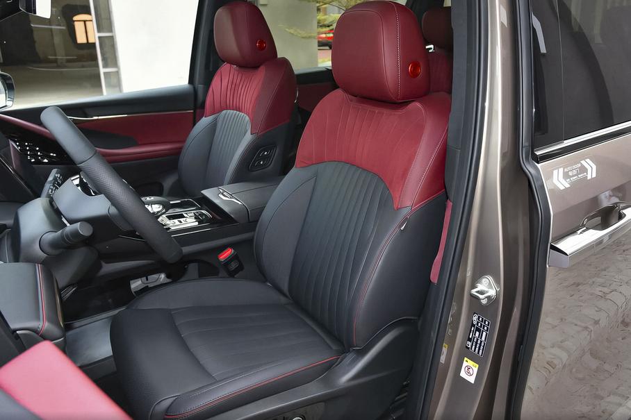 Семиместный салон минивэна выполнен из двухцветной натуральной кожи черно-красного оттенка. В комплектацию модели входит 12,3-дюймовая цифровая приборная панель, мультимедийная система с сенсорным дисплеем диагональю 14,6 дюйма и трехспицевый мультифункциональный руль. Других подробностей оснащения продавец не приводит.