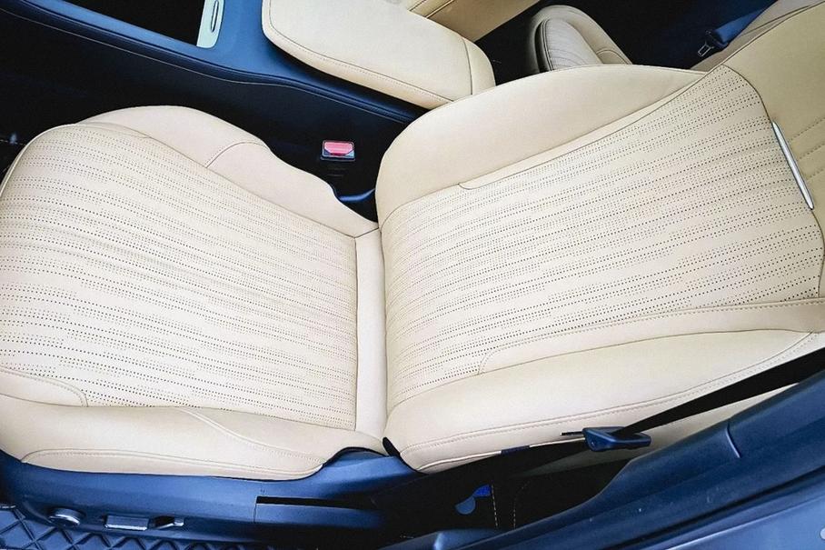 У автомобиля в комплектации Starship, который продают в Москве, бежевый кожаный салон, люк на крыше, климат-контроль, десять подушек безопасности (фронтальные, коленные, шторки, а также боковые спереди и сзади), аудиосистема с сабвуфером и восемью динамиками, датчики парковки спереди и сзади, а также круиз-контроль и камера заднего вида.