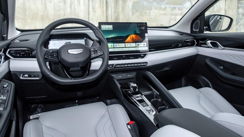 Главным же новшеством в салоне Coolray L стал центральный тачскрин диагональю 14,6 дюйма, который работает на процессоре Е02 — его установили вместо прежнего сдвоенного моноблока. Панель приборов цифровая, ее диагональ составляет 8,8 дюйма. Наконец, добавили новый вариант оформления интерьера в оттенках серого, а по центру рулевого колеса можно рассмотреть обновленную эмблему Geely.