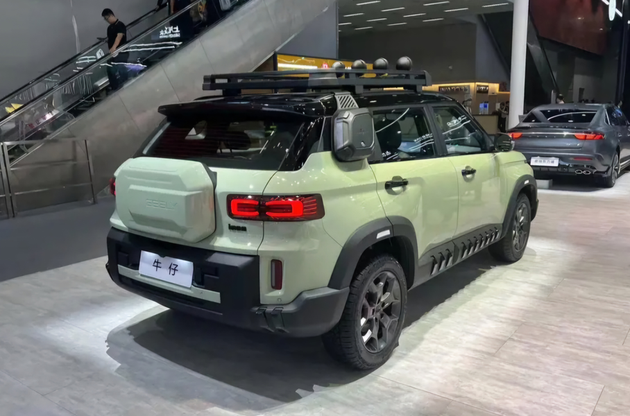 В КНР дебютировал очередной кроссовер по цене Lada VestaВ топовом исполнении Geely Cowboy оснащен ручками на капоте, дополнительной светотехникой, багажником на крыше площадью 1,3 квадратных метра и грузоподъемностью 50 килограммов, а также боксом сбоку. 17-дюймовые колесные диски «обуты» во внедорожные шины AT. В «базе» оборудование беднее: есть только задний кофр, рейлинги на крыше и пластиковый обвес.