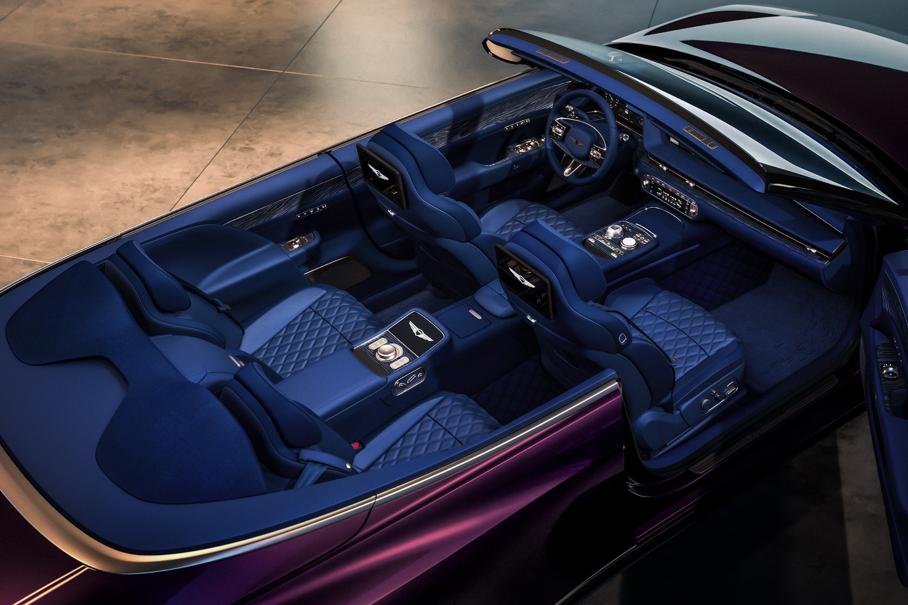 И купе, и его открытая версия являются производными от серийной флагманской модели Genesis G90От стандартного седана G90 и купе, и кабриолет отличаются большим углом наклона передних стоек и лобового стекла. Соответственно, линия крыши у них ниже. Двери при этом сделали шире, чтобы облегчить доступ в салон. Расширены и крылья, а колесные диски дополнены поперечными сечениями, контрастирующими с двухрядными спицами. Изменен дизайн заднего бампера — его сделали более гладким.